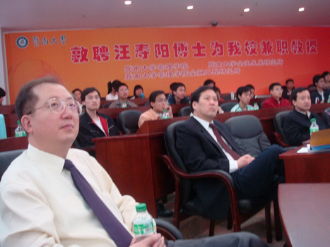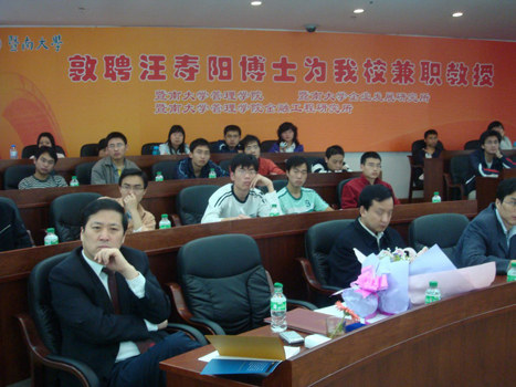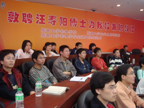 参加此次学术活动的还有暨南大学副校长王华教授、经济学院党委书记杜金岷教授、珠海学院党委书记林福永教授及管理学院研究生办公室陈伟泉主任。正在厦门出差的管理学院会计系主任胡玉明教授也非常关心此次学术活动,他从厦门发来短信特别向汪寿阳教授表示问候!
