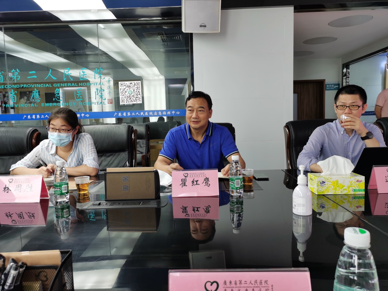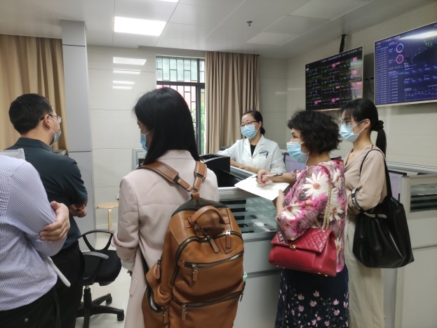 瞿红鹰院长首先安排项目组成员参观学习广东省应急医院的智慧医疗成果。参会者首先参观了智能监控安防中心,听取了智能监控安防系统功能讲解;然后参观了广东省远程影像中心,了解整个远程问诊技术实现方案以及实时问诊状况;接着参观广东省远程心电中心,与医生探讨了人工智能技术提高远程心电监测效率的可能性;接下来参观了智慧病区,学习最先进的医院病区智慧化管理方法;最后到应急指挥中心,观摩了省应急医院的智慧大脑。